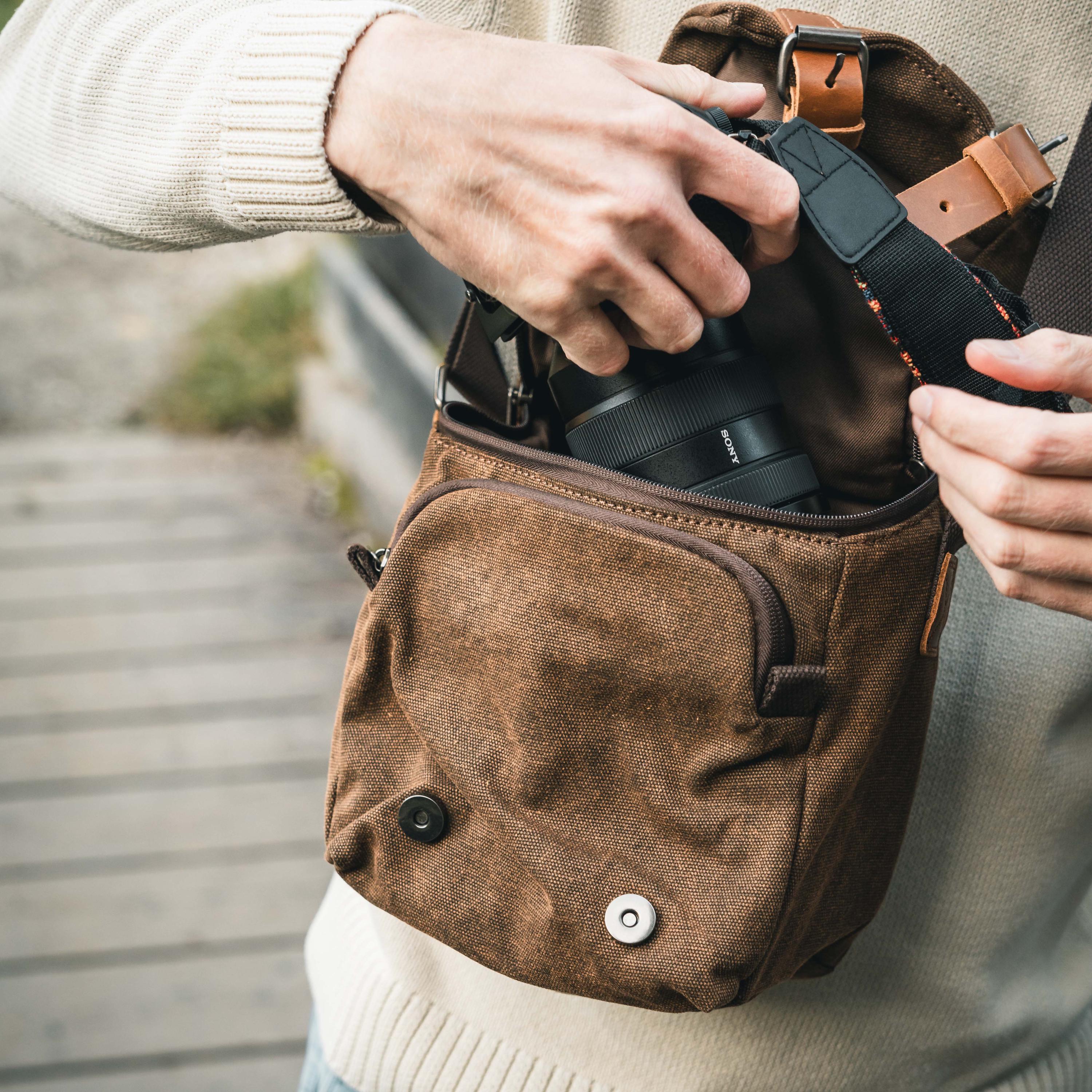 Camera bag, photo bag, canvas, retro, vintage, water-repellent, DSLR, DSLM